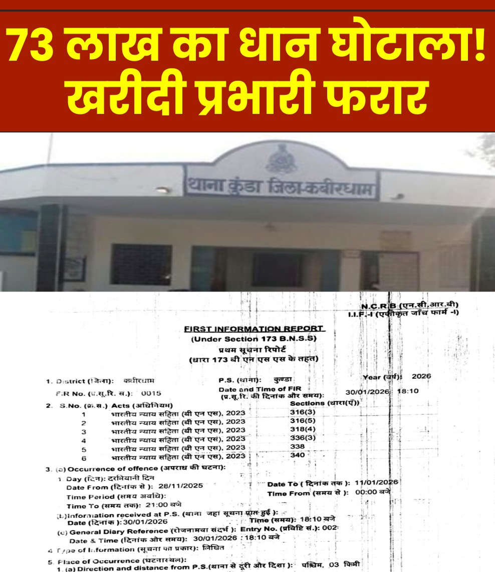 - कबीरधाम में अवैध धान खपाने की कोशिश विफल, पुलिस ने की कार्रवाई