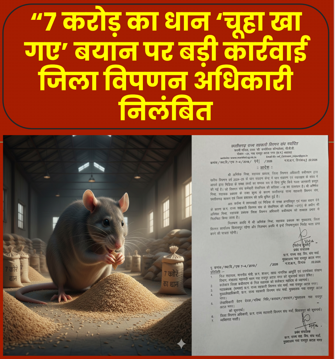- ‘चूहा-दीमक खा गए धान’ बयान पड़ा भारी: विपणन अधिकारी निलंबित