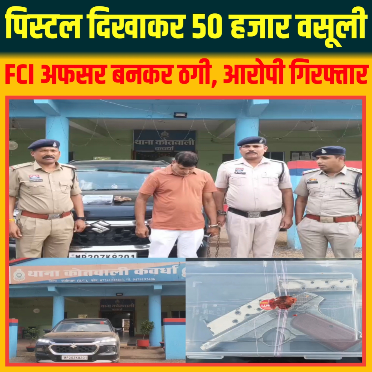 - पिस्टल की नोक पर 50 हजार की वसूली: खुद को FCI अधिकारी बताकर किराना व्यापारी को धमकाया, आरोपी गिरफ्तार