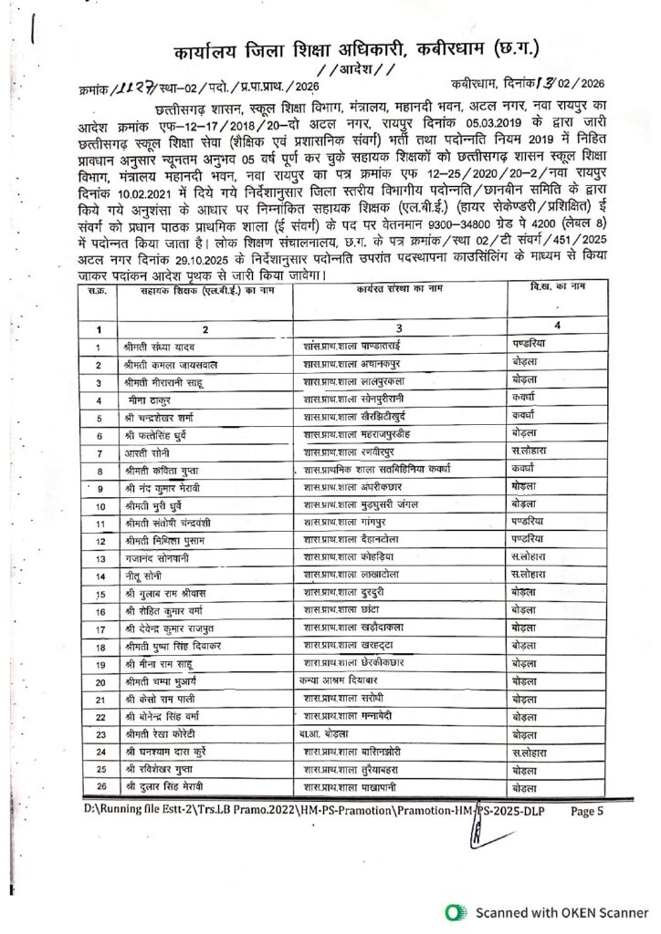 कवर्धा। जिले के सहायक शिक्षकों के लिए बड़ी खुशखबरी सामने आई है। लंबे समय से लंबित चल रही प्रक्रिया पर आखिरकार मुहर लग गई और प्राथमिक प्रधान पाठक के 70 पदों पर पदोन्नति आदेश जारी कर दिए गए। आदेश जारी होते ही शिक्षकों में उत्साह की लहर दौड़ गई।
